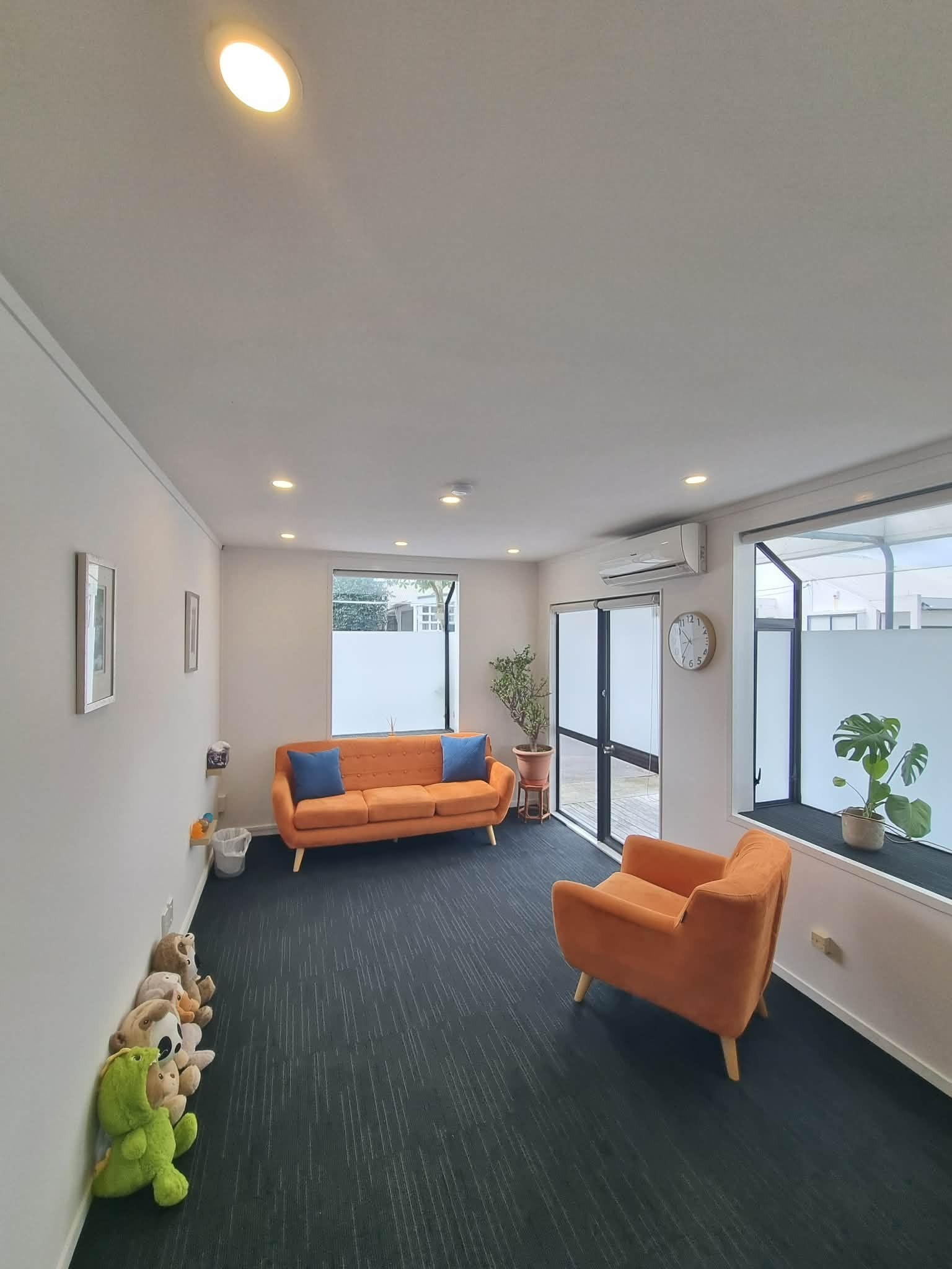 A warm and welcoming space with tall wooden ceilings and natural bush views. Ideal for assessments and one-on-one sessions, it provides a calm, focused environment where clients feel at ease.